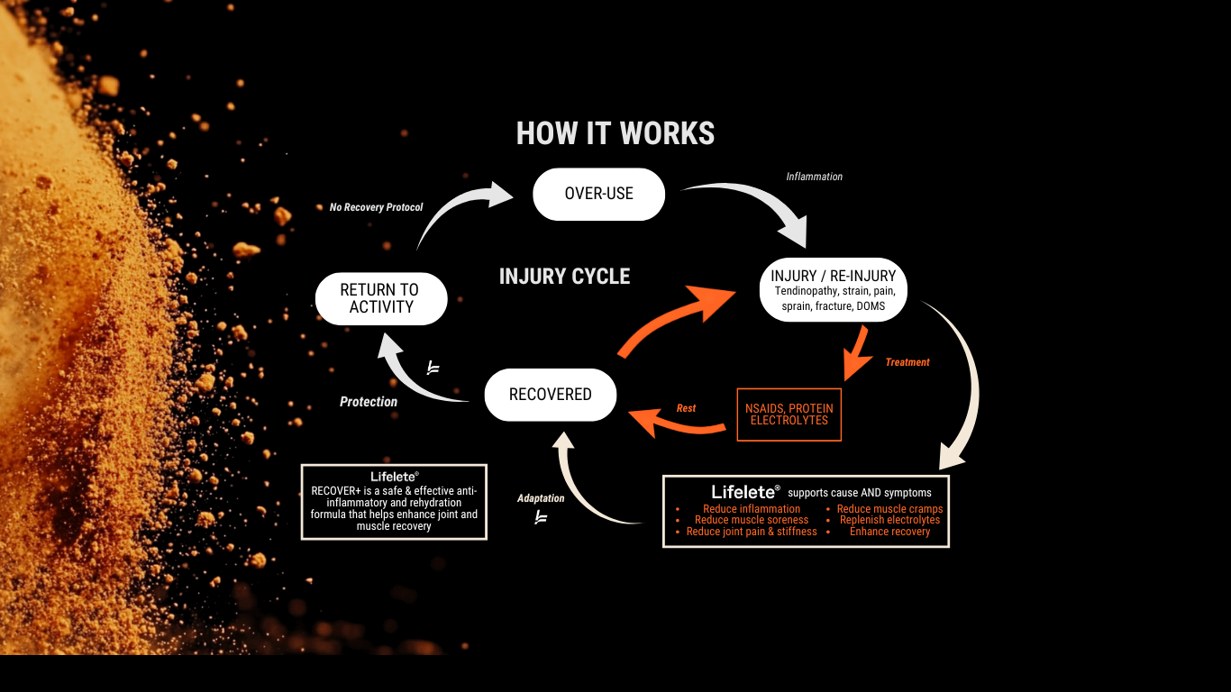Developed with evidence-based doses of HydroCurc® Curcumin Extract, Magnesium Bisglycinate and Electrolytes to provide multi-action support for inflammation, muscle and joints, and cellular hydration after exercise.
